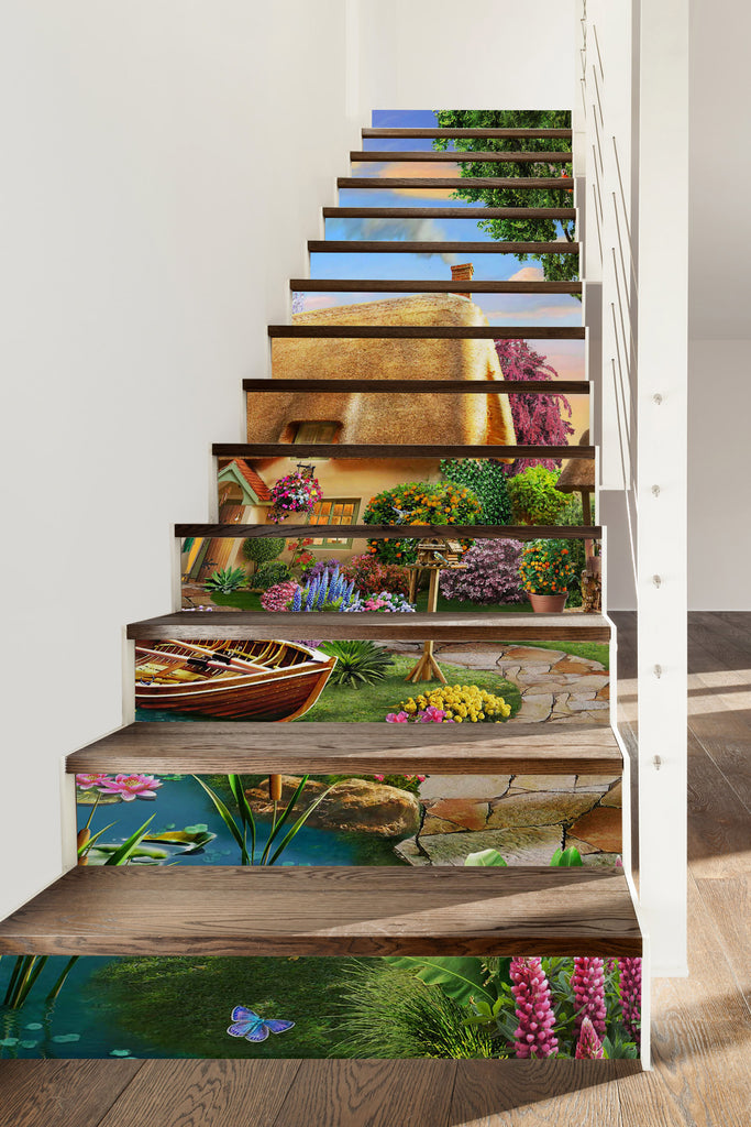 3D Lotus Pond Garden Cottage 96207 Adrian Chesterman Stair Risers Sinsin