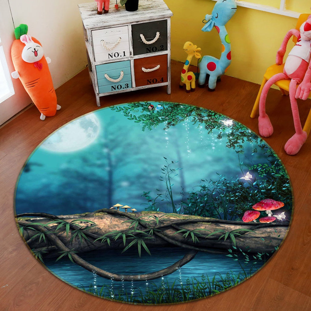 3D Magic Forest Night 31 Round Non Slip Rug Mat