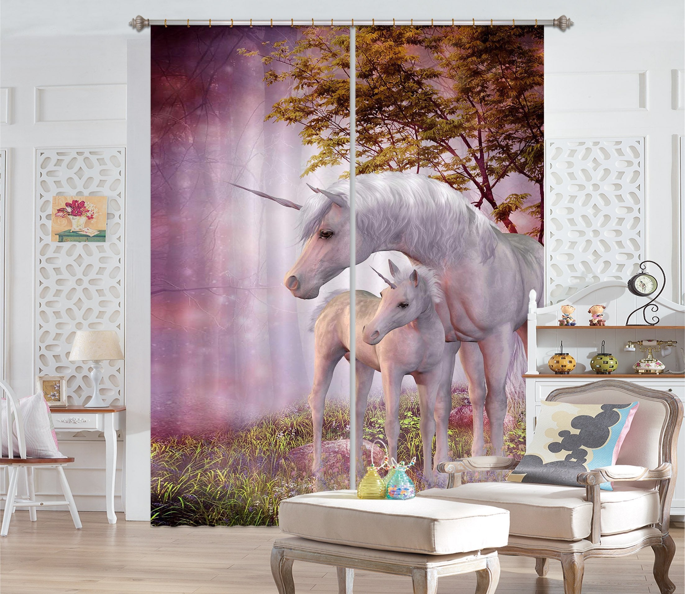 3D Mutual Dependence Unicorns 123 Curtains Drapes