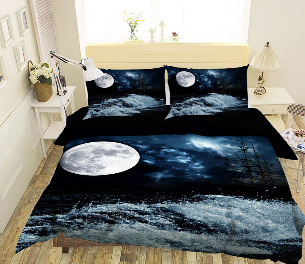 3D Night Moon Sea 060 Bed Pillowcases Quilt Zoe