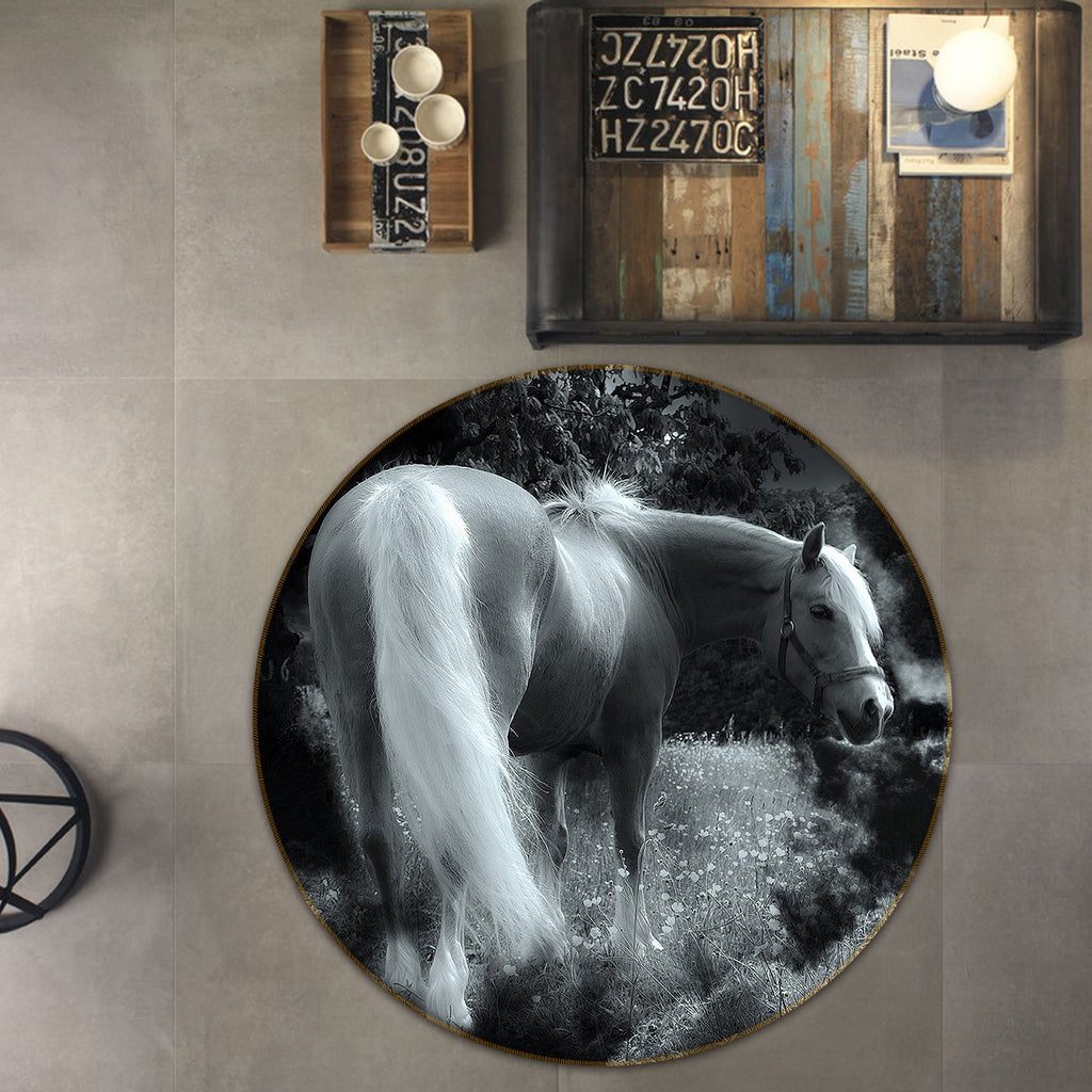 3D Night White Horse 057 Animal Round Non Slip Rug Mat