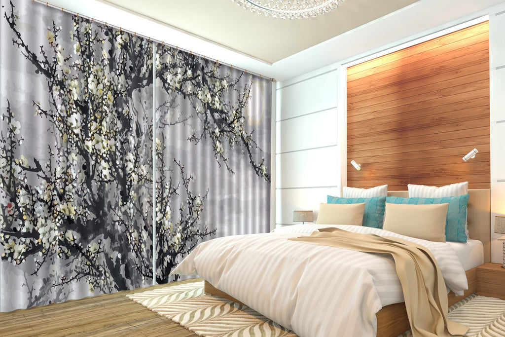 3D Plum Flowers 564 Curtains Drapes