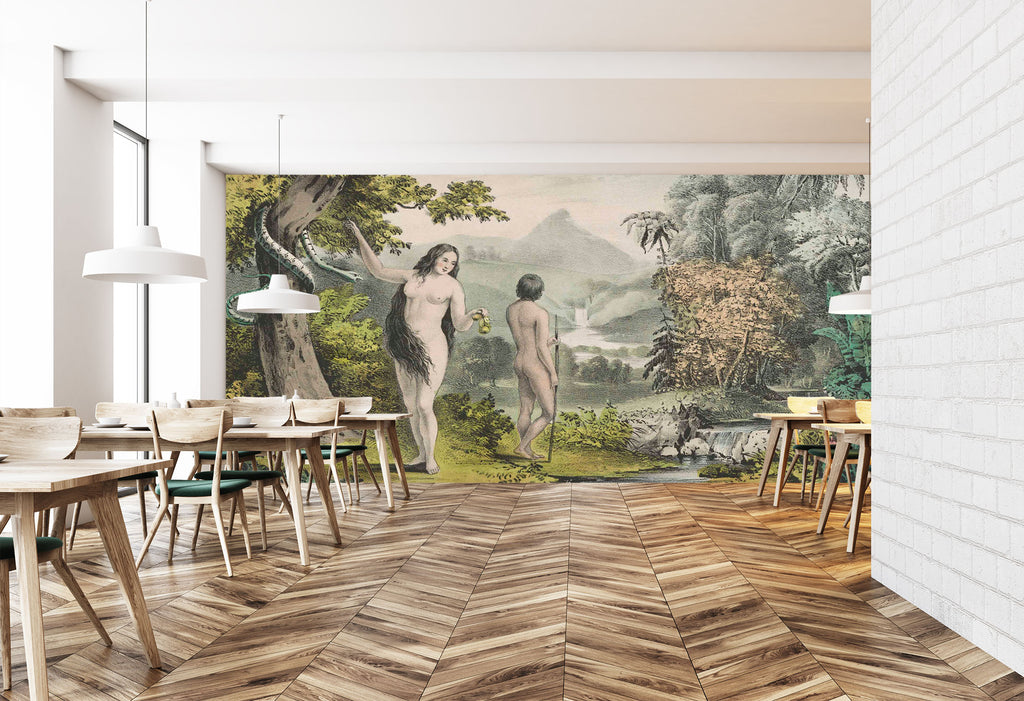 Apply the 1st panel. Leave 1-2cm overage on top. Bottom and left hand side. Smooth wrinkles and remove bubbles. Align panel 2 to panel 1. Simply match the pattern of the mural (with 2-3cm overlap)Peel away the excess piece.