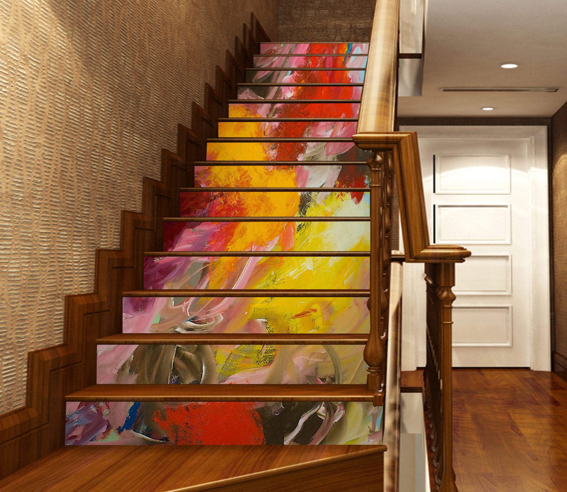 3D Red Yellow Block Oil Painting Texture 90163 Allan P. Friedlander Stair Risers Sinsin