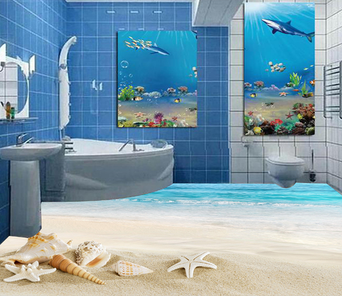 3D Sandy Beach 200 Floor Mural Self-Adhesive Sticker Bathroom Non-slip Waterproof Flooring Murals