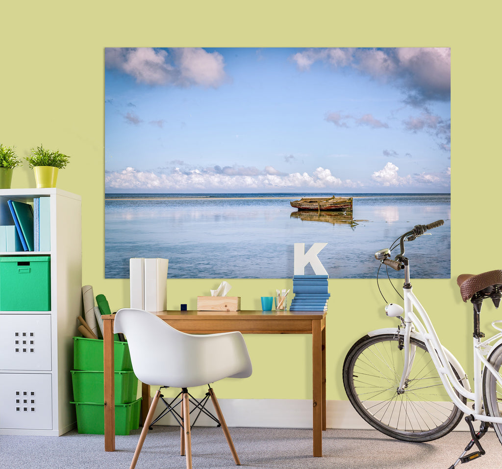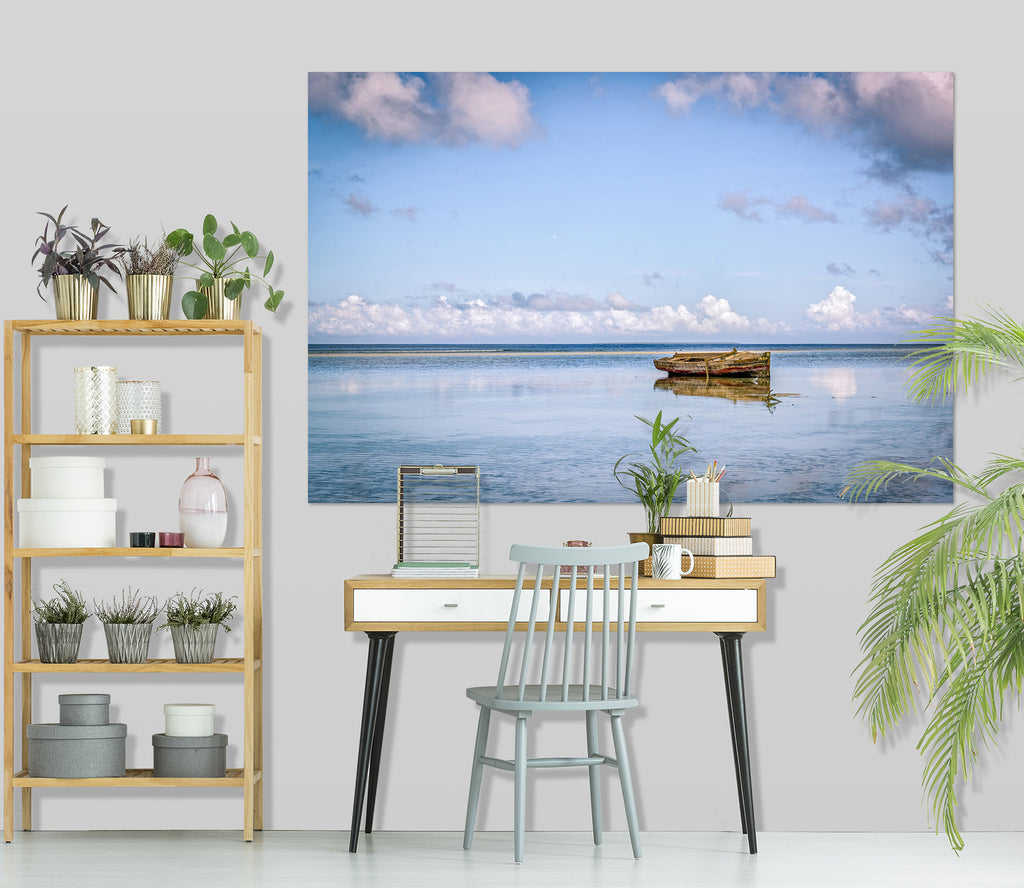 Make sure the wall surface is flat, clean and smooth. A clean and dry wall will help the adhesive from your wall mural to keep its stickiness. Put all panels on the ground, check the order. Measure and write down the dimensions of each panel. Mark vertical guidelines according to the panel's dimensions. Leave 2-3cm overlap between panels.