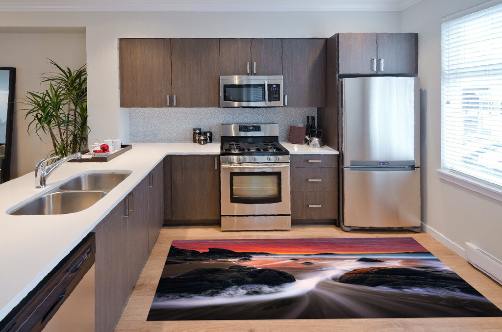 3D Sea Pink Clouds 619 Kitchen Mat Floor Mural