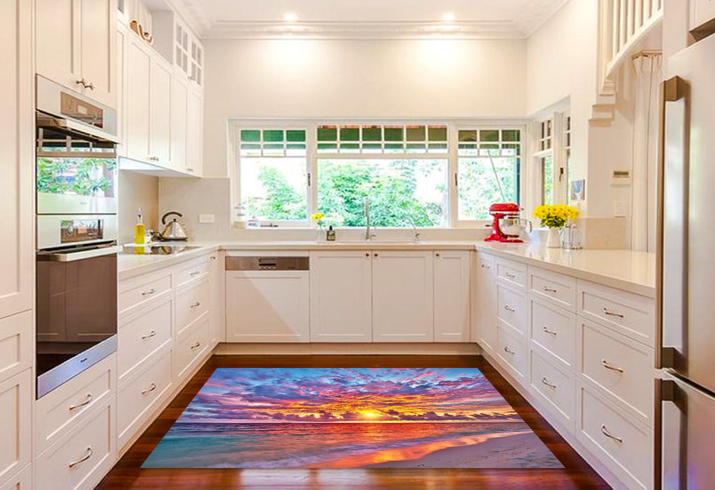 3D Sea Sunset Glow Kitchen Mat Floor Mural