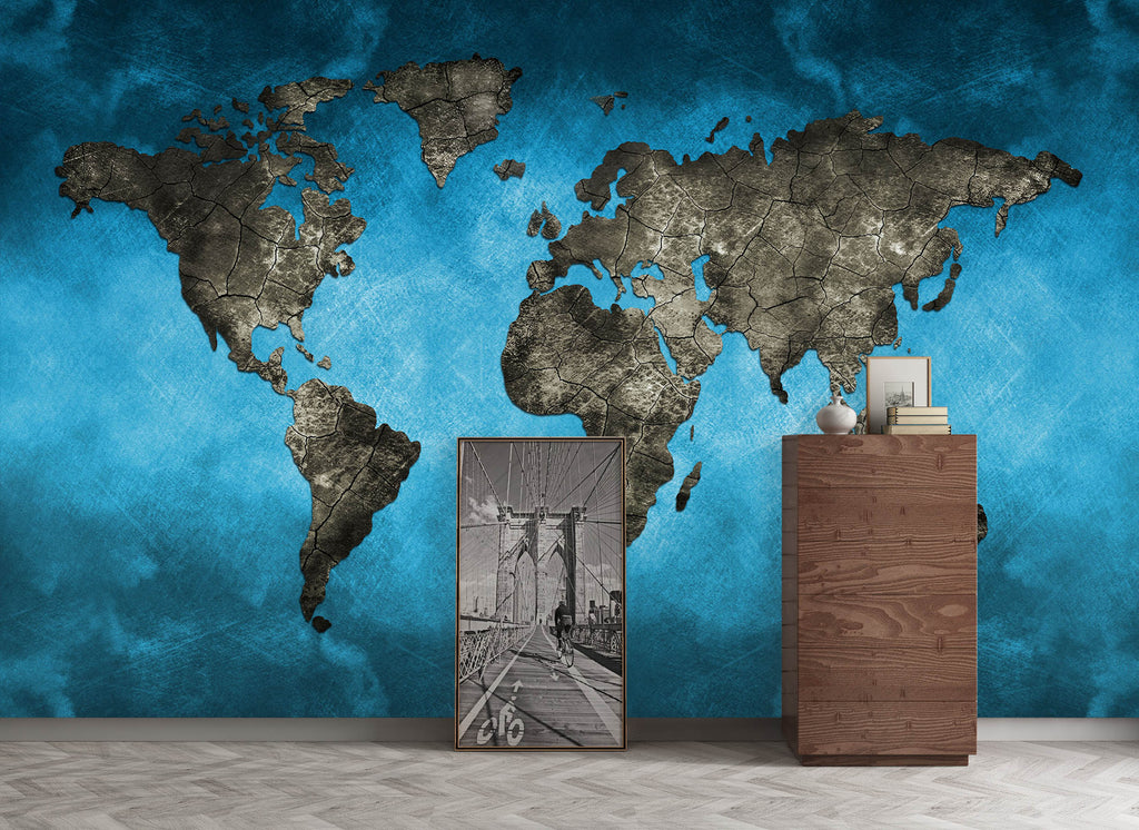 3D Sea Valley 2008 World Map Wall Murals Dai