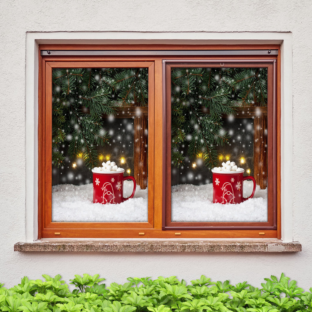 3D Snow Water Cup 31093 Christmas Window Film Print Sticker Cling Stained Glass Xmas