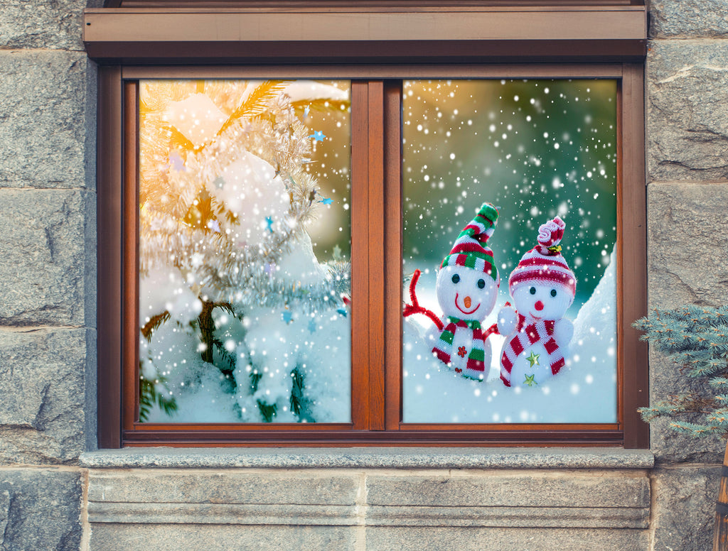3D Snowman 30076 Christmas Window Film Print Sticker Cling Stained Glass Xmas