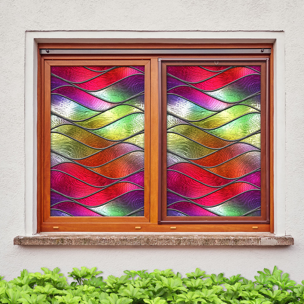3D Stained Glass Waves 142 Window Film Print Sticker Cling Stained Glass UV Block