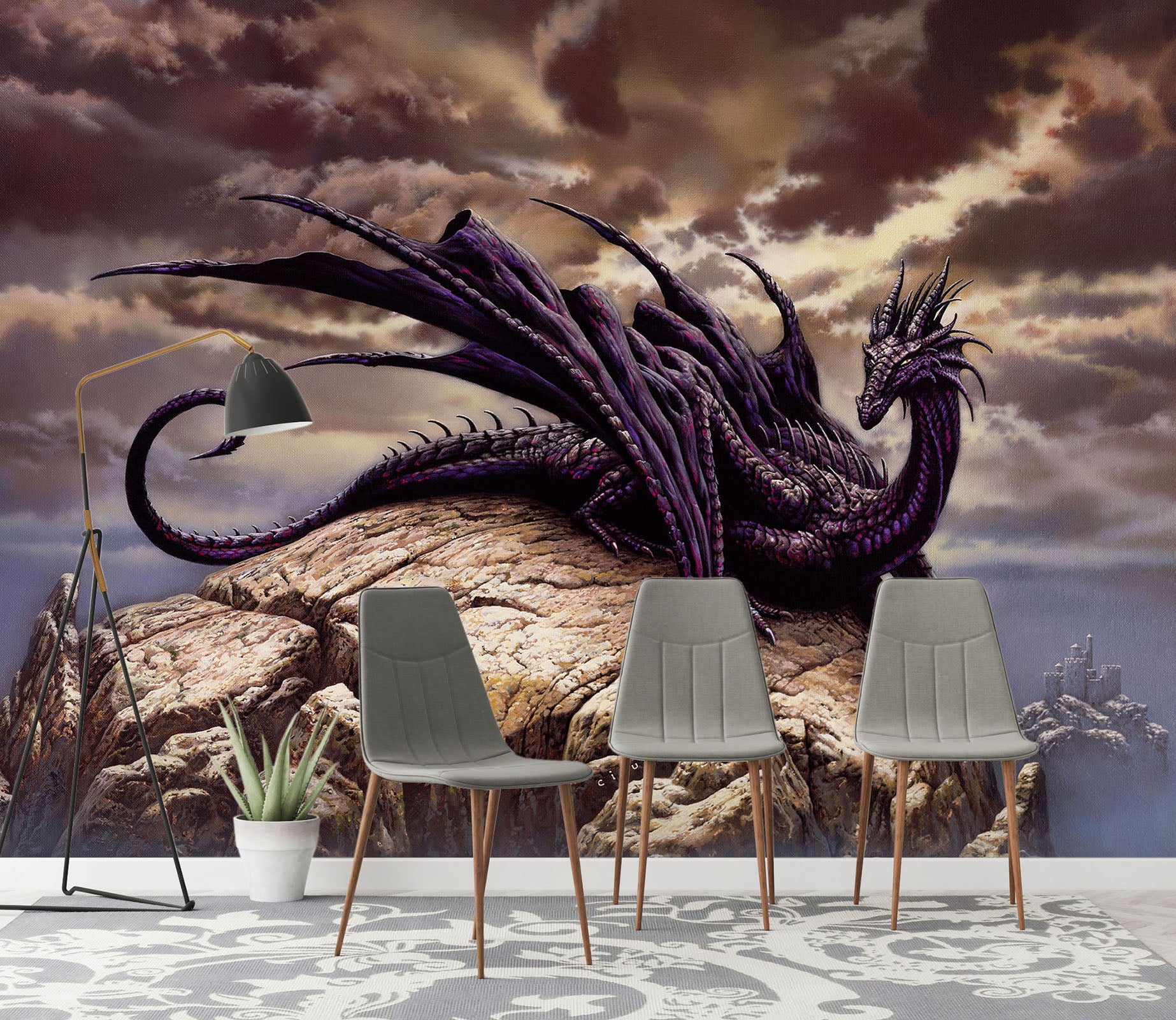3D Stone Cloud Dragon 7052 Ciruelo Wall Mural Wall Murals Sinsin