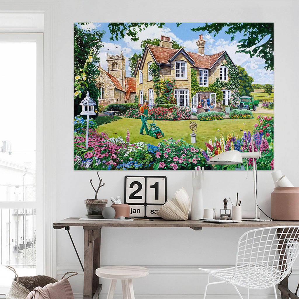 Make sure the wall surface is flat, clean and smooth. A clean and dry wall will help the adhesive from your wall mural to keep its stickiness. Put all panels on the ground, check the order. Measure and write down the dimensions of each panel. Mark vertical guidelines according to the panel's dimensions. Leave 2-3cm overlap between panels.
