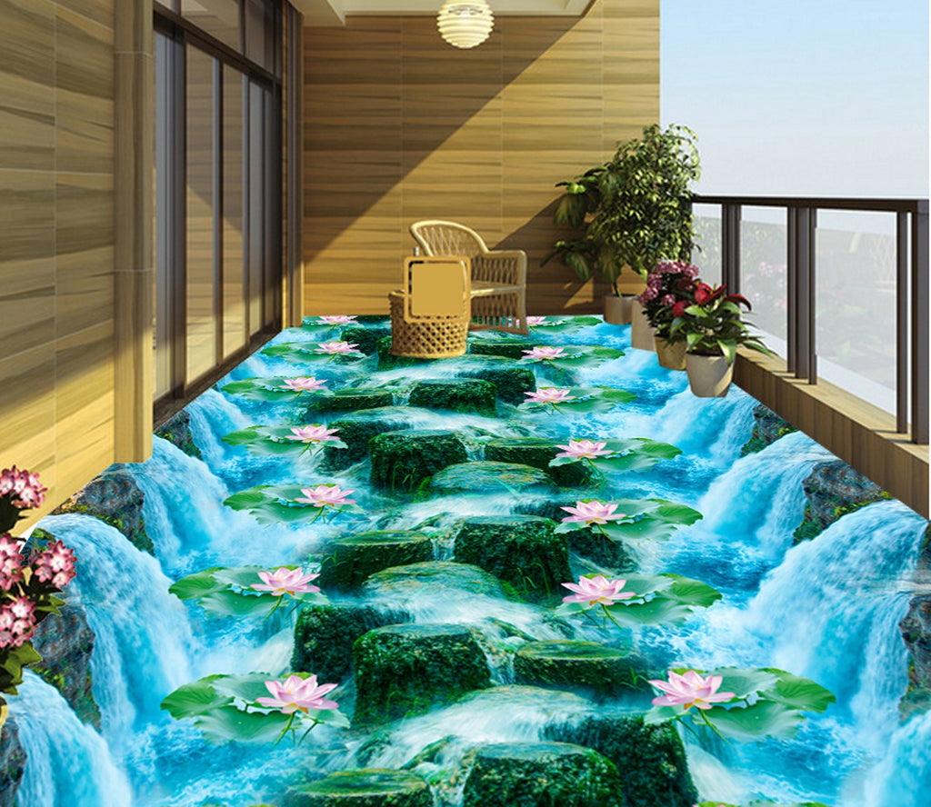 3D Water Lotus WG379 Floor Mural Self-Adhesive Sticker Bathroom Non-slip Waterproof Flooring Murals