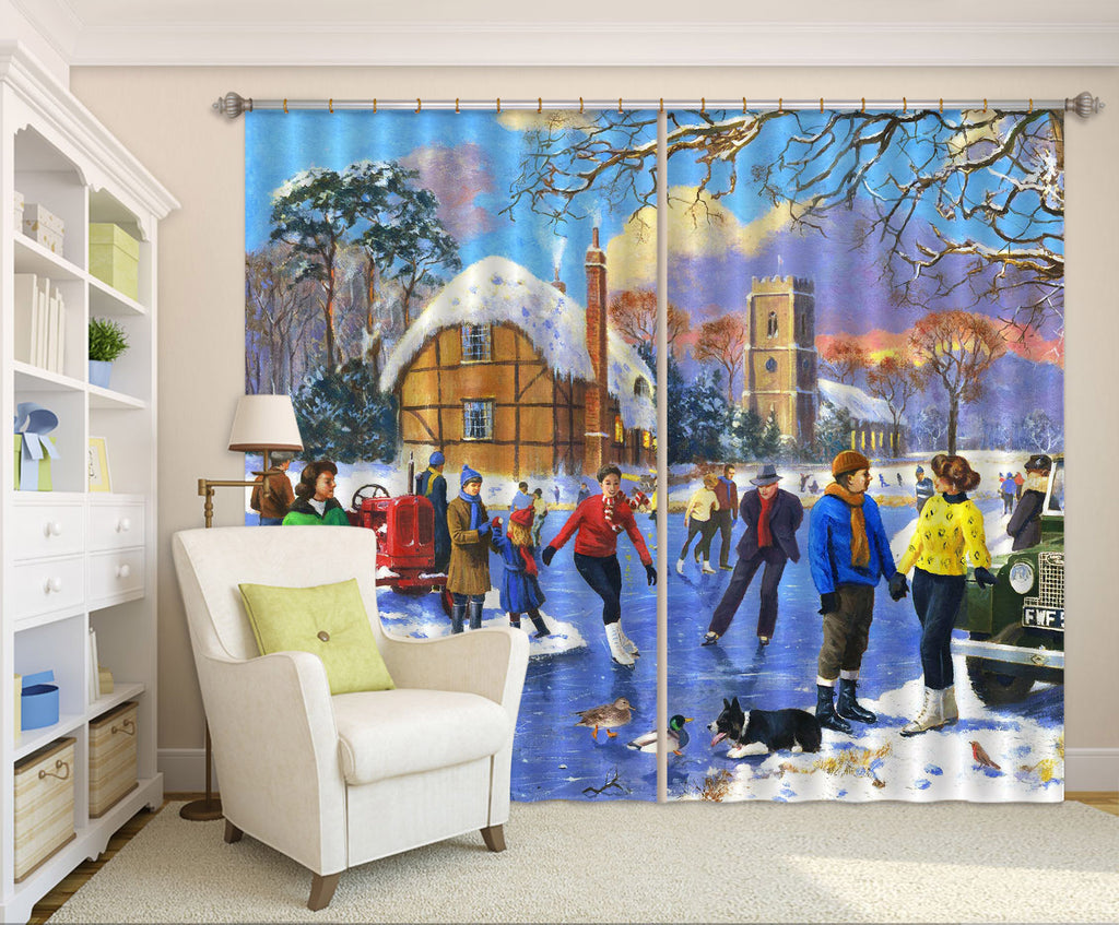 3D Winter Skating 143 Kevin Walsh Curtain Curtains Drapes Amy