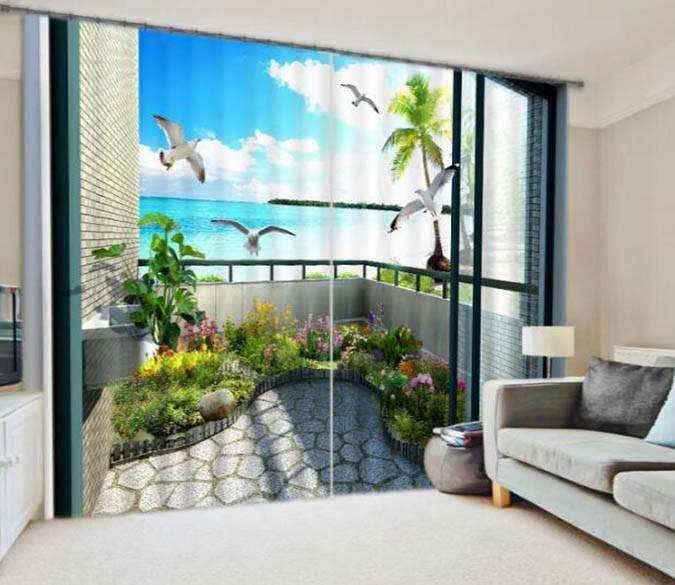 3D Balcony Sea Scenery 915 Curtains Drapes