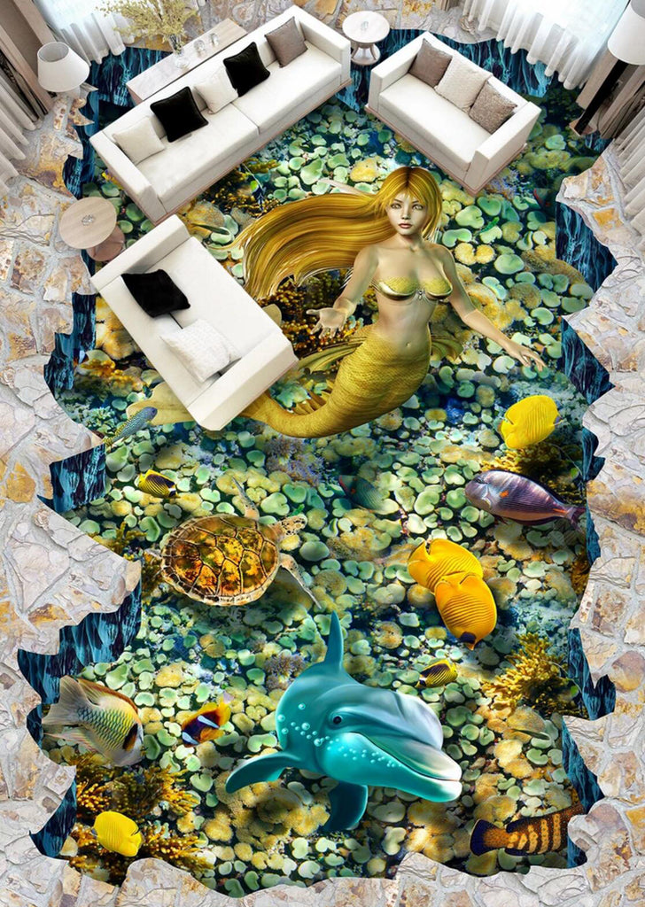 3D Beautiful Mrmaid 040 Floor Mural Romy