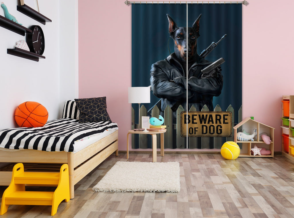 3D Beware Of Dog 010 Vincent Hie Curtain Curtains Drapes