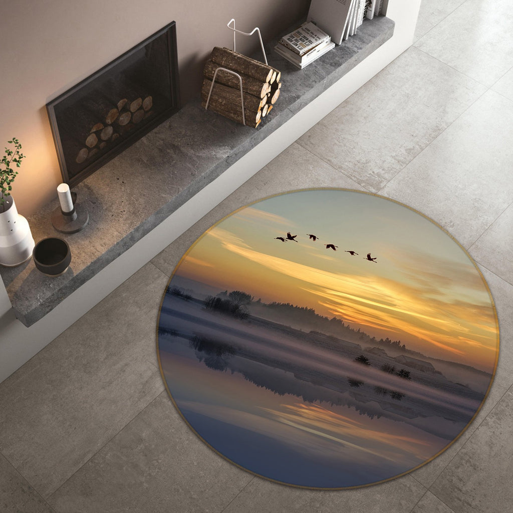3D Big Geese Flying South 095 Animal Round Non Slip Rug Mat