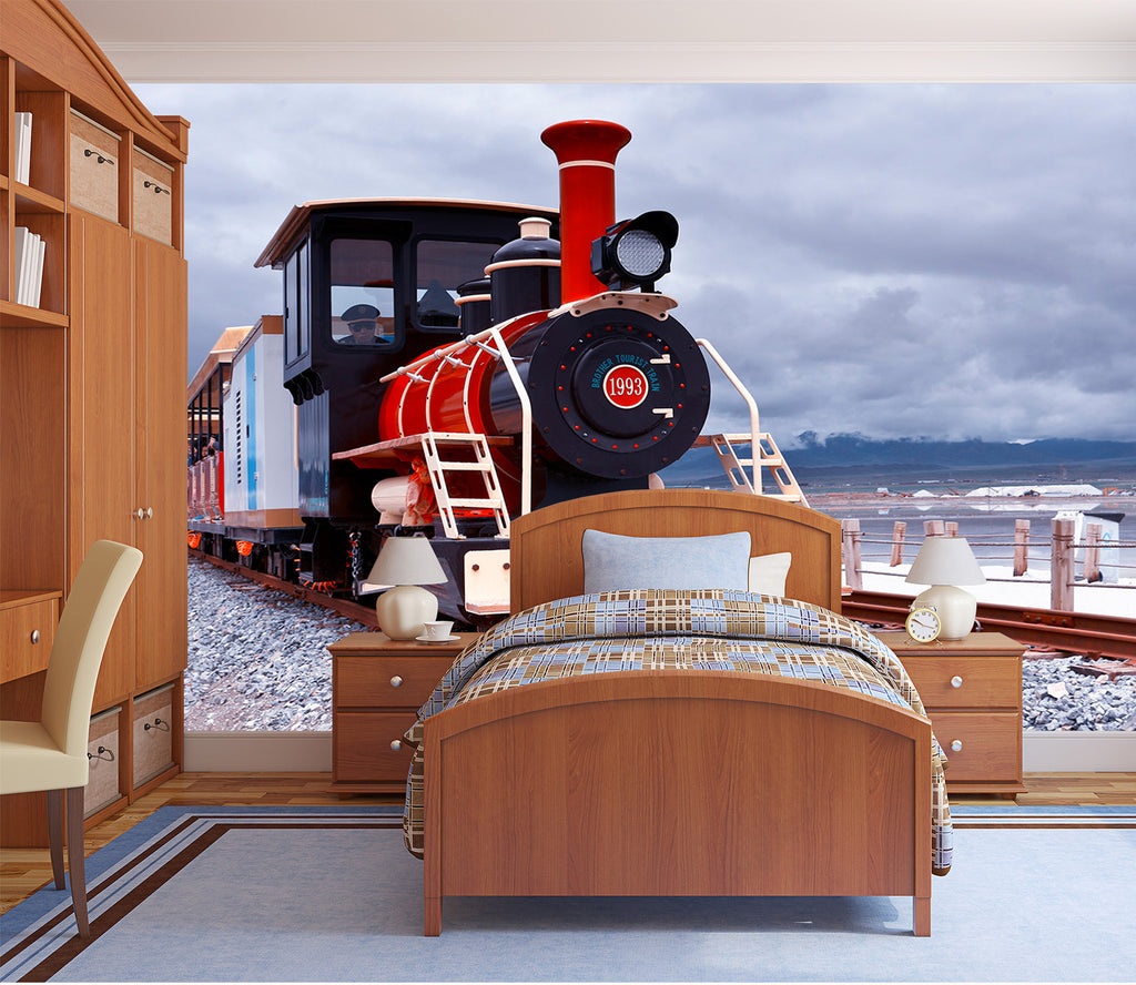 3D Black Cloud Train 082 Vehicle Wall Murals