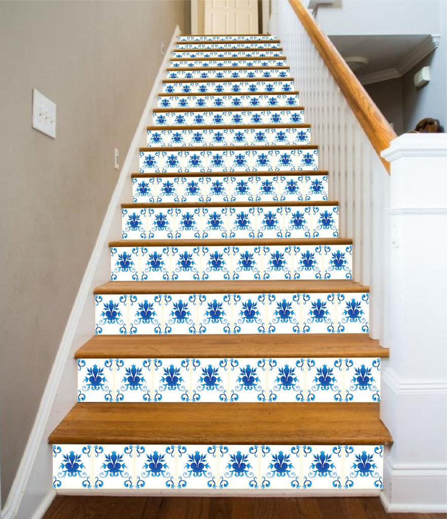 3D Blue Broken Flowers 632 Stair Risers
