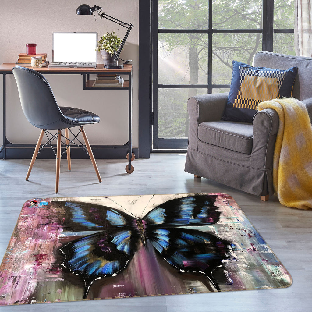 3D Blue Butterfly 1258 Skromova Marina Rug Non Slip Rug Mat Amy