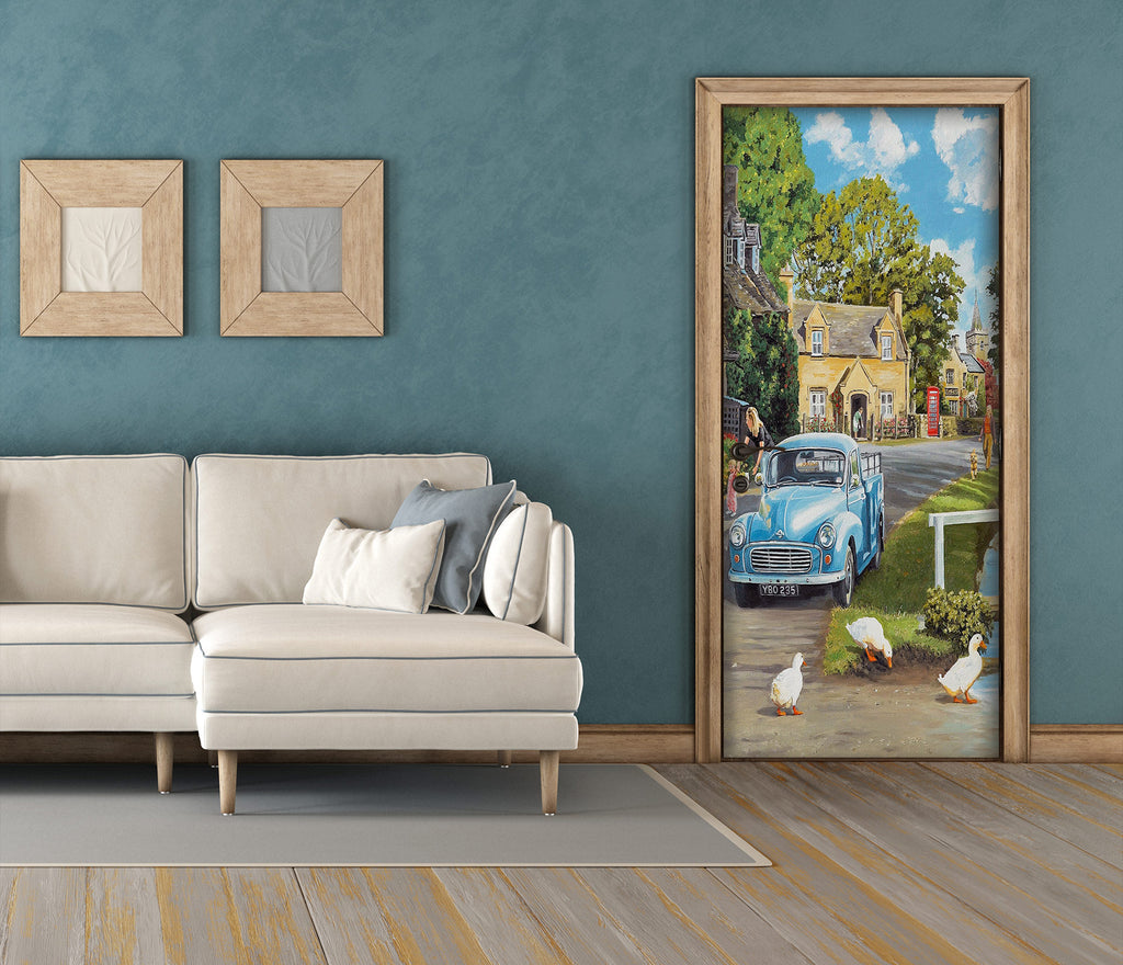 3D Blue Car Duck 10327 Trevor Mitchell Door Mural Sinsin