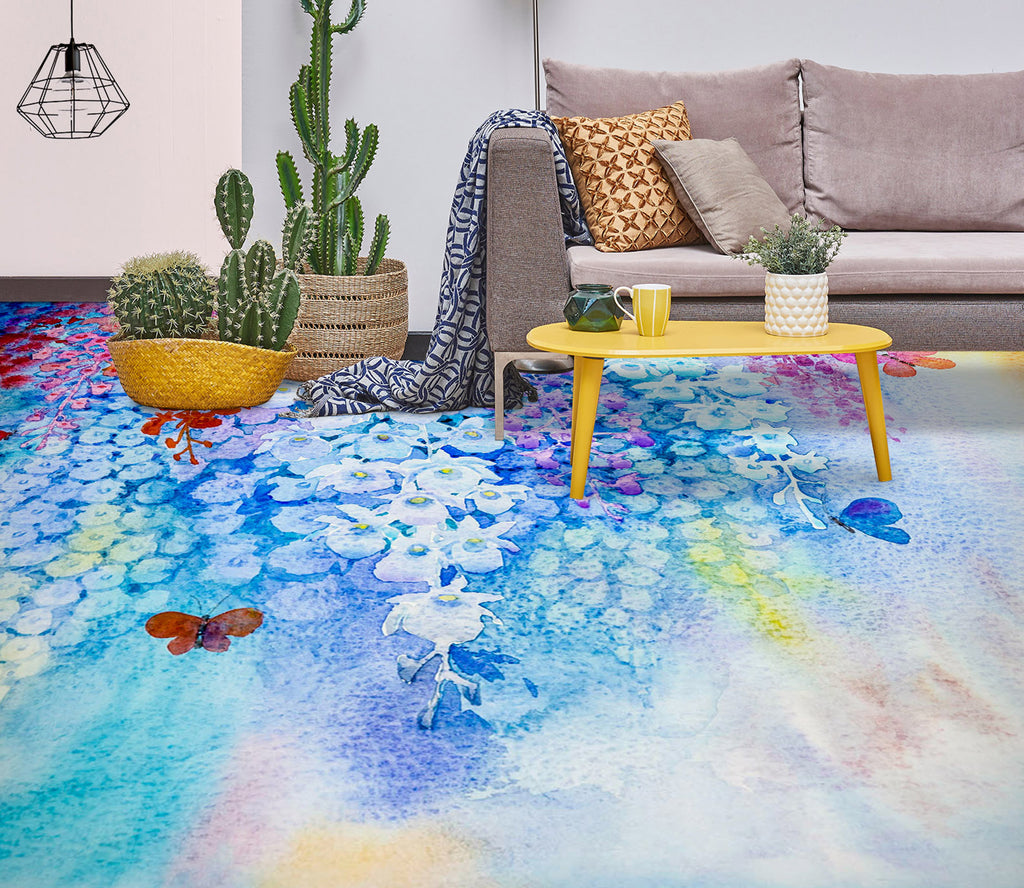 3D Blue Flower Bunch 1229 Floor Mural Wallpaper Murals Self-Adhesive Removable Print Epoxy