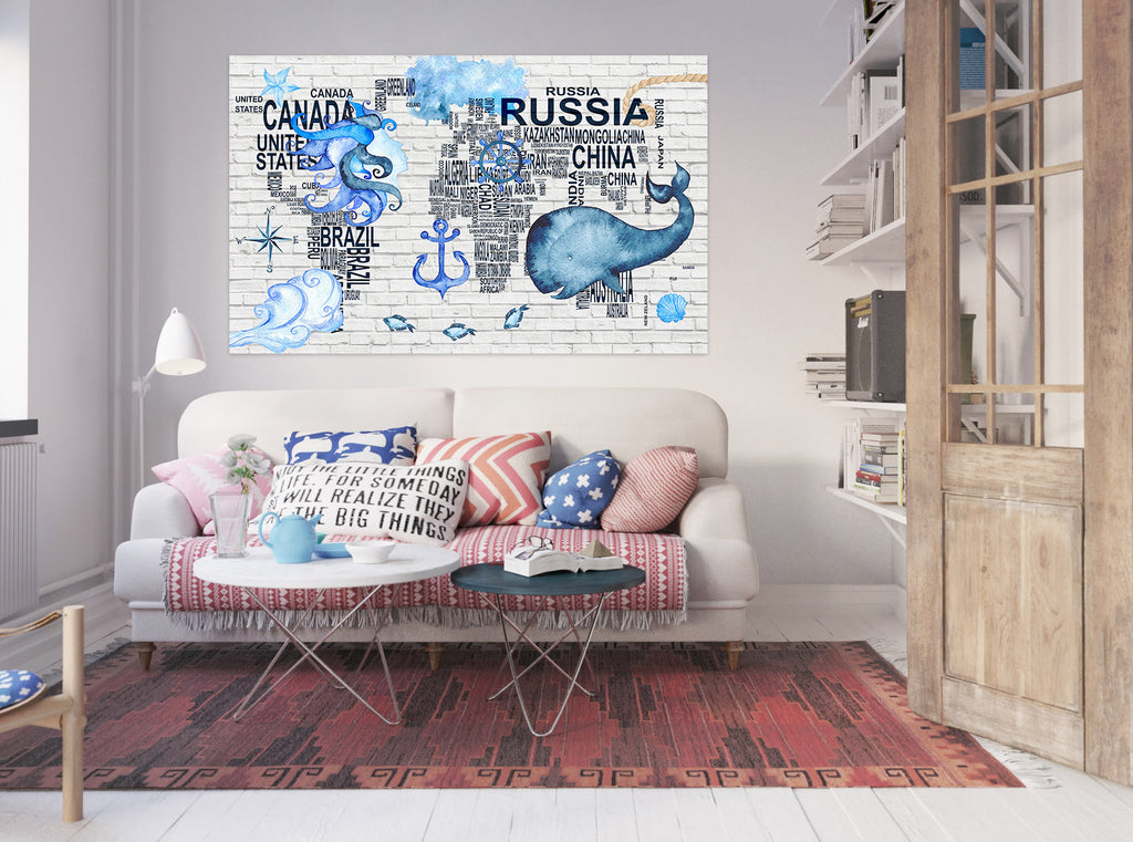 3D Blue Whale 116 World Map Wall Sticker Dai