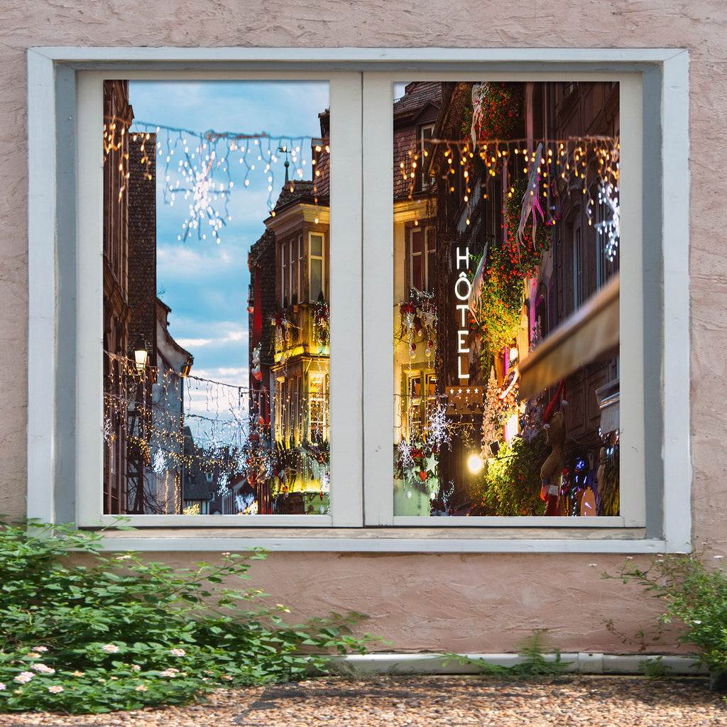 3D Building 30035 Christmas Window Film Print Sticker Cling Stained Glass Xmas