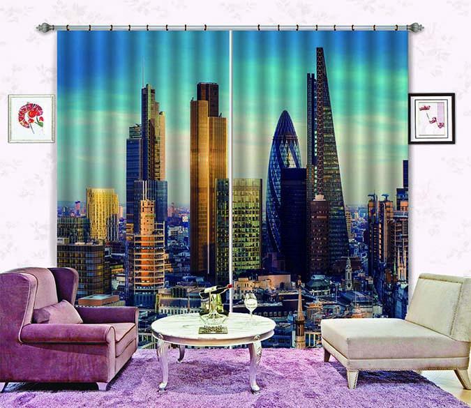 3D Bustling London 543 Curtains Drapes
