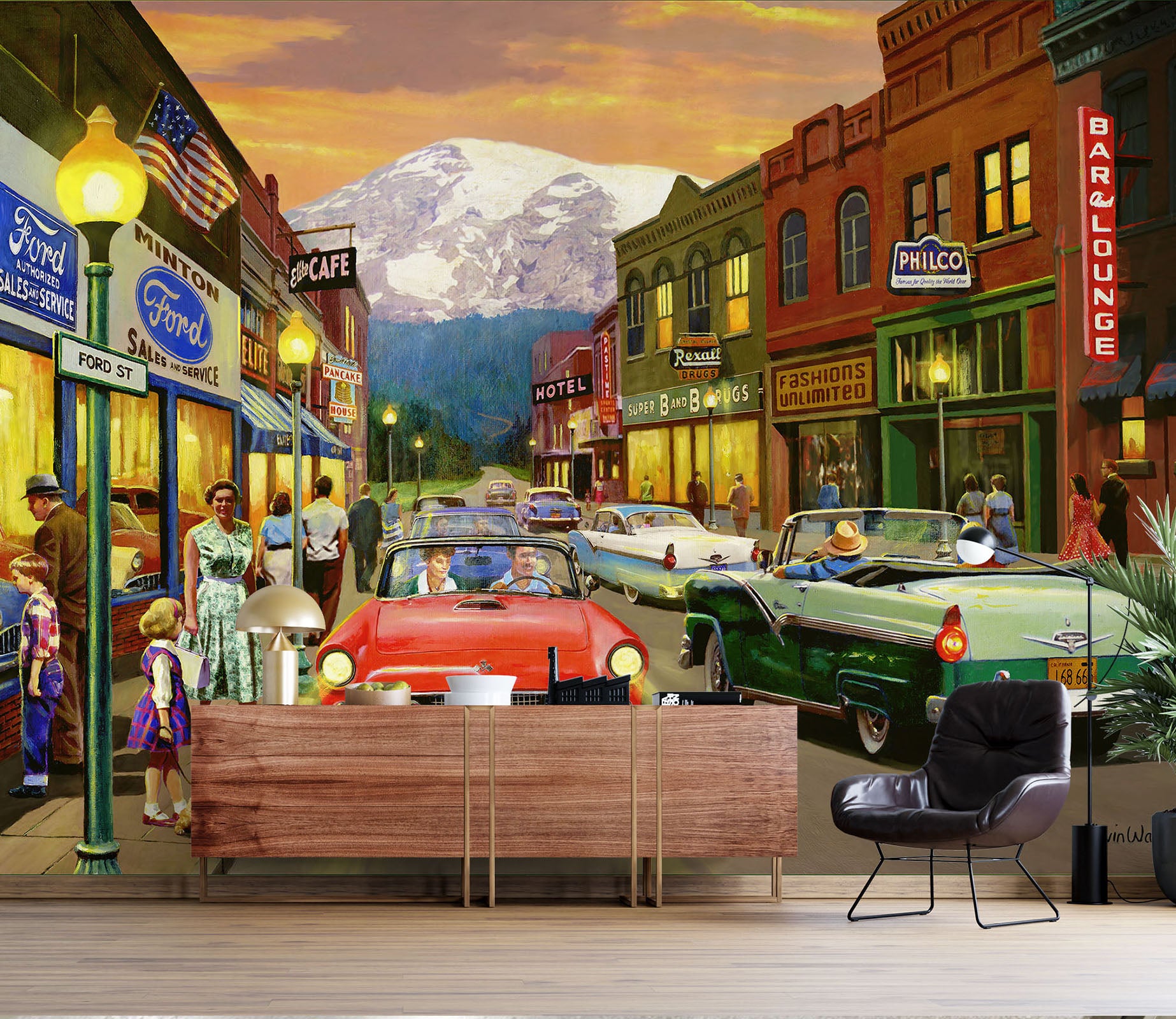 3D Bustling Street 126 Kevin Walsh Wall Mural Wall Murals