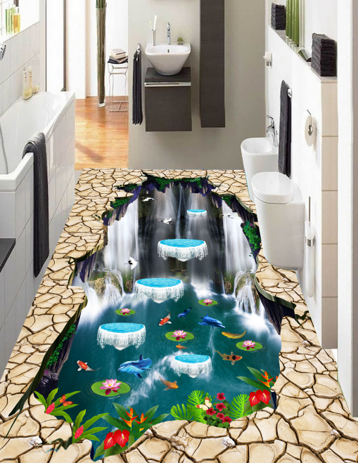3D Cartoon Dolphins 340 Floor Mural Self-Adhesive Sticker Bathroom Non-slip Waterproof Flooring Murals