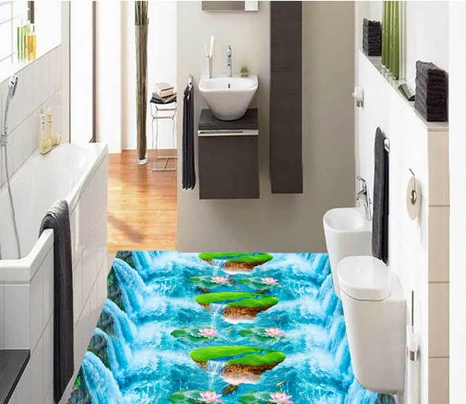 3D Cartoon Lotus 166 Floor Mural Self-Adhesive Sticker Bathroom Non-slip Waterproof Flooring Murals