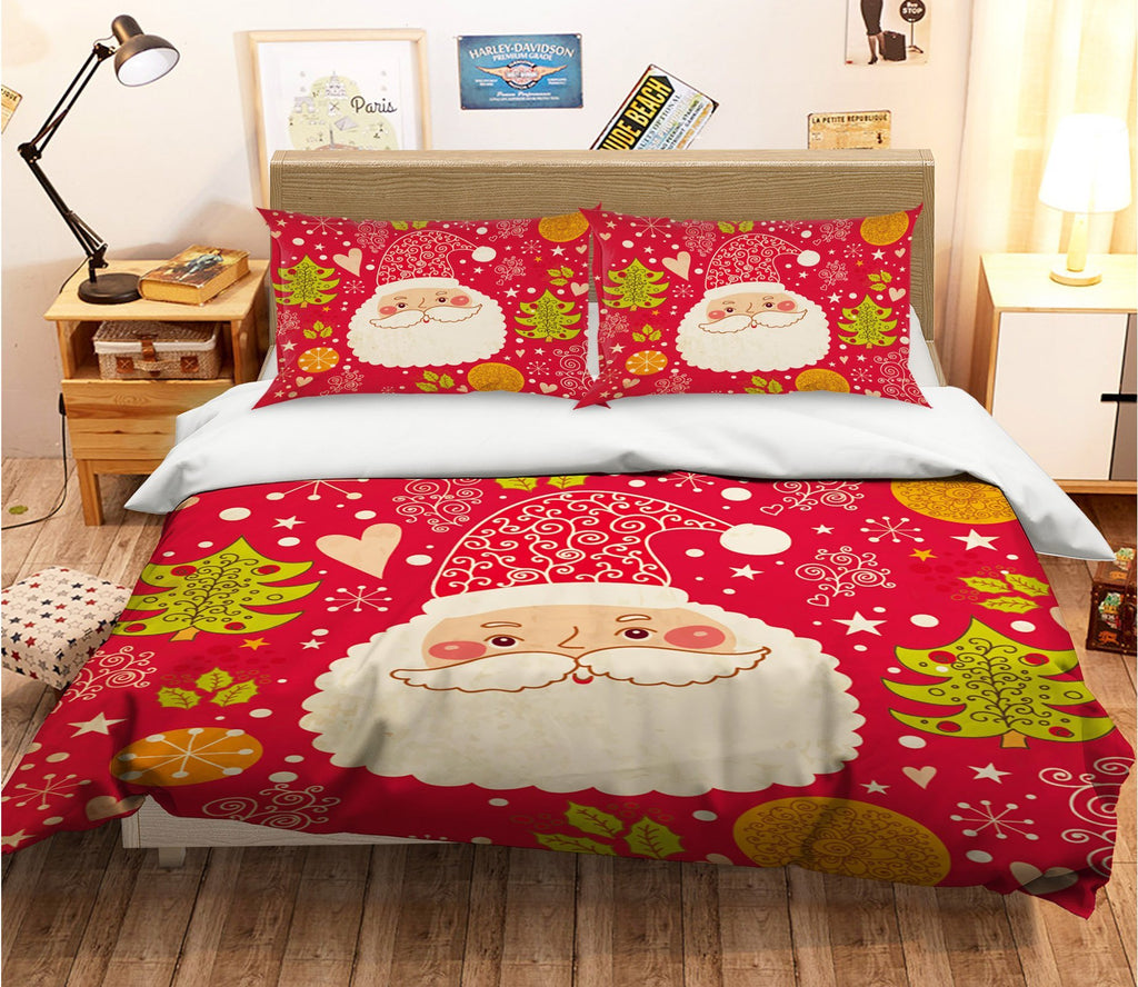 3D Christmas Happy Old Man 44 Bed Pillowcases Quilt