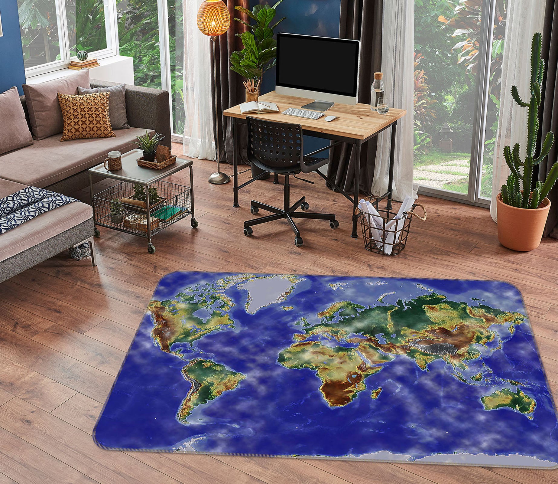 3D Coastal Island 302 World Map Non Slip Rug Mat Dai