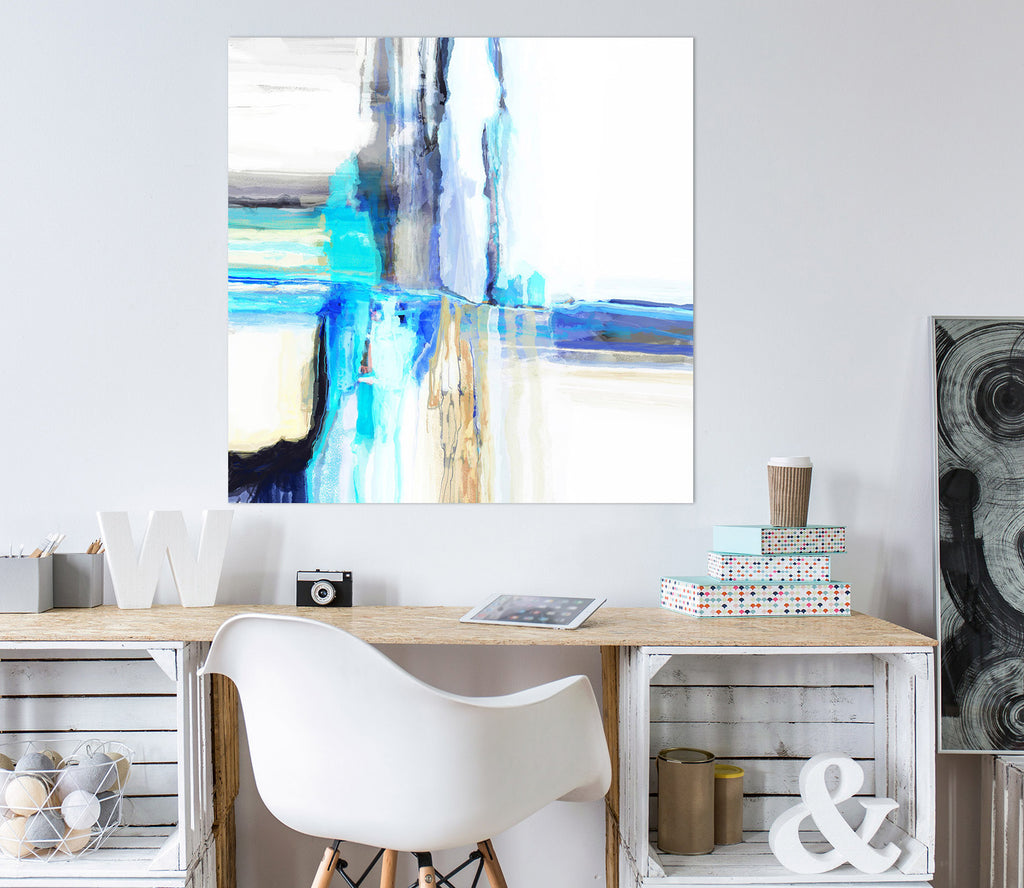 Make sure the wall surface is flat, clean and smooth. A clean and dry wall will help the adhesive from your wall mural to keep its stickiness. Put all panels on the ground, check the order. Measure and write down the dimensions of each panel. Mark vertical guidelines according to the panel's dimensions. Leave 2-3cm overlap between panels.