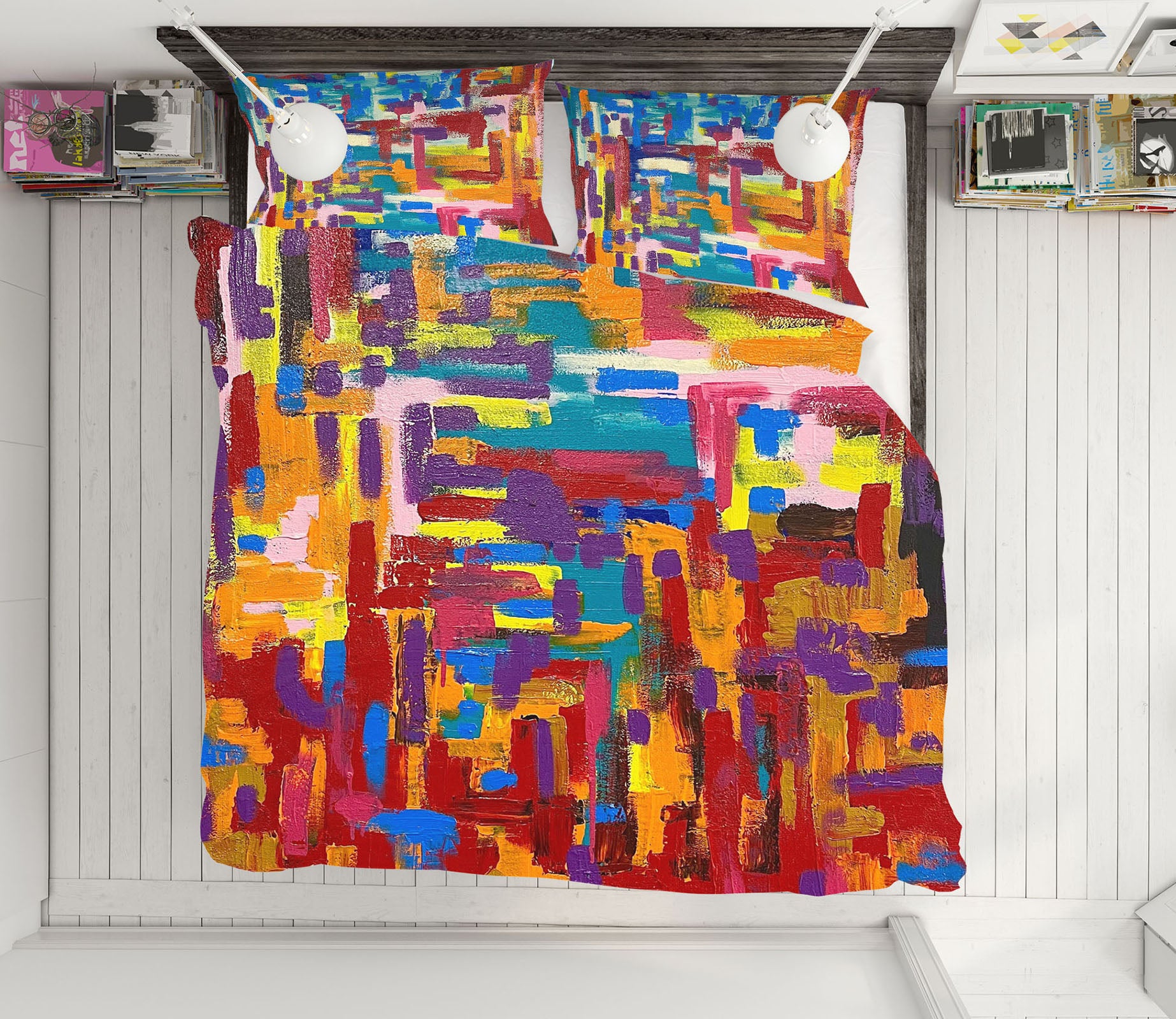 Introducing our colorful and vibrant bedding set, perfect for brightening up any bedroom. Our bedding set is made with high-quality materials and features a stunning painted design that will capture the attention of your guests. Our product is perfect for anyone who loves bold and vibrant colors in their decor. Our bedding set includes a comfortable duvet cover and pillowcases, making it the perfect addition to your bedroom. Our product is perfect for anyone looking to add a touch of personality to their bedding. Shop now and transform your bedroom into a colorful and vibrant oasis.