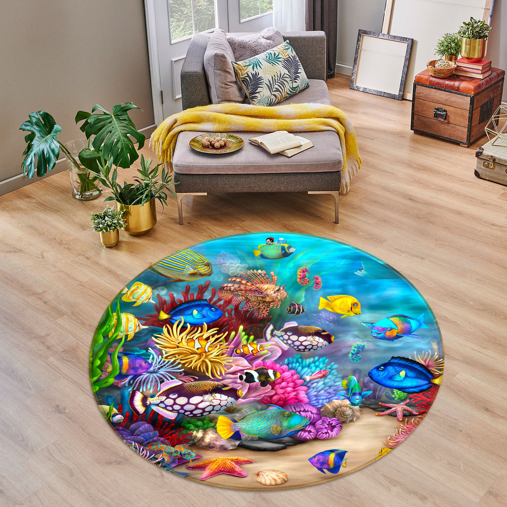 3D Colorful Fish Coral 8919 Brigid Ashwood Rug Round Non Slip Rug Mat Amy