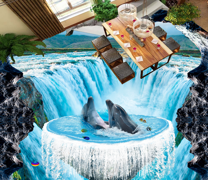 3D Dolphin Leisurely 163 Floor Mural