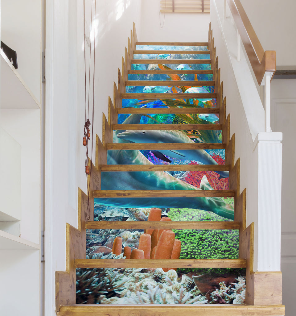 3D Dolphin Seaweed 96195 Adrian Chesterman Stair Risers Sinsin