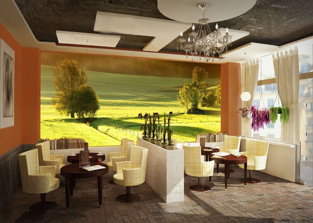 Align panel 2 to panel 1. Simply match the pattern of the mural (with 2cm overlap).No need to cut. Repeat for additional panels. Trim any ceiling and baseboard overage, lt's better to wipe the mural's surface with a wet cloth after the installation. Because it will make more sticky.