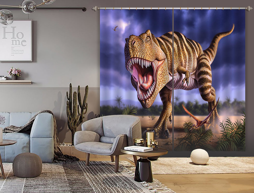 3D Fierce Dinosaur 056 Jerry LoFaro Curtain Curtains Drapes Dai