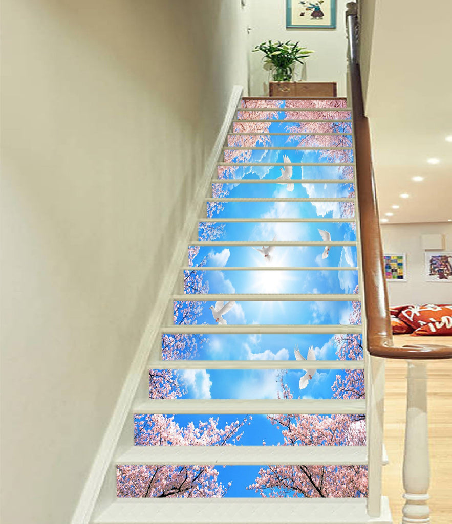 3D Flowers Trees Flying Birds 1532 Stair Risers