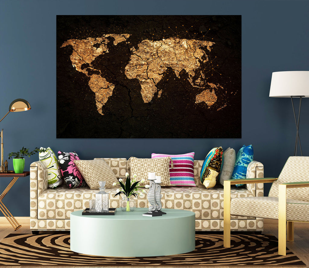 3D Gold Pattern 219 World Map Wall Sticker Dai