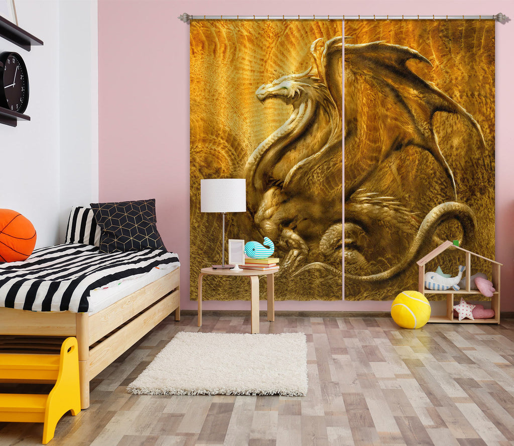 3D Golden Dragon 8025 Ciruelo Curtain Curtains Drapes Sinsin