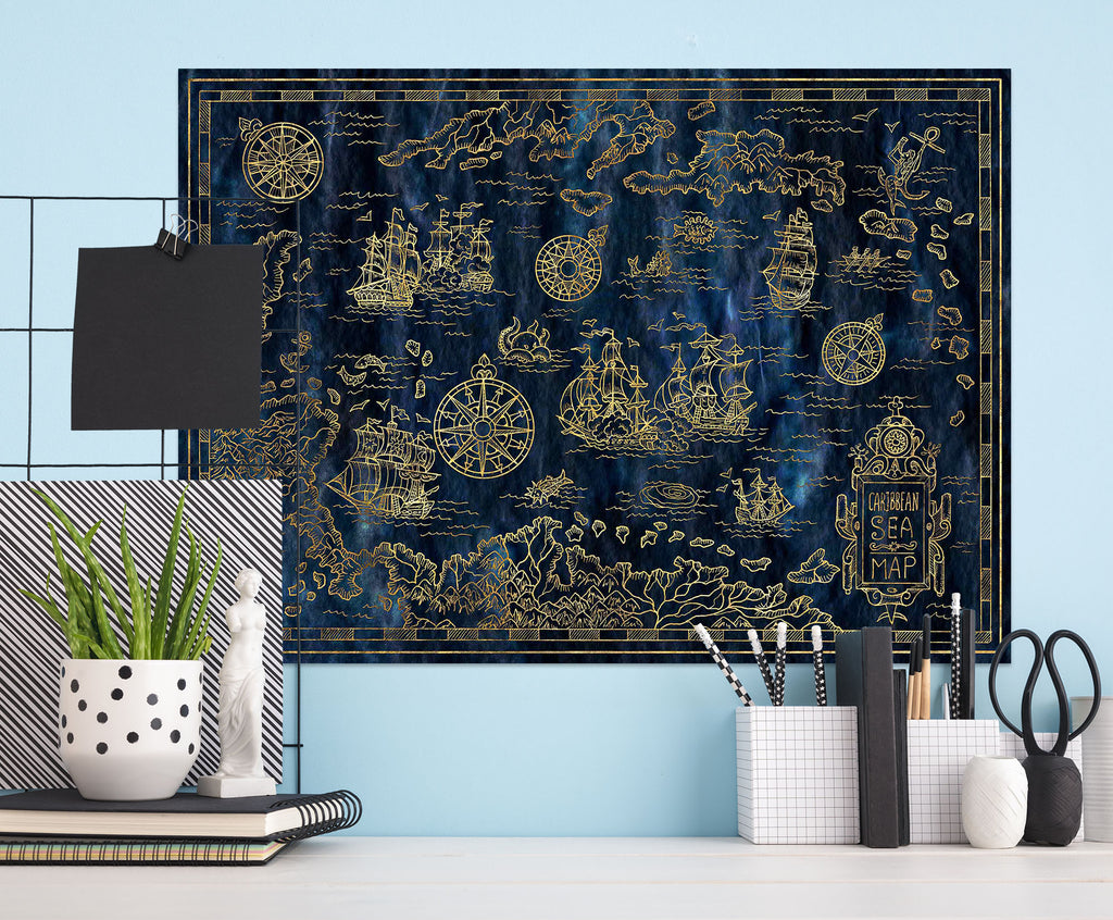 3D Golden Ship 258 World Map Wall Sticker Dai
