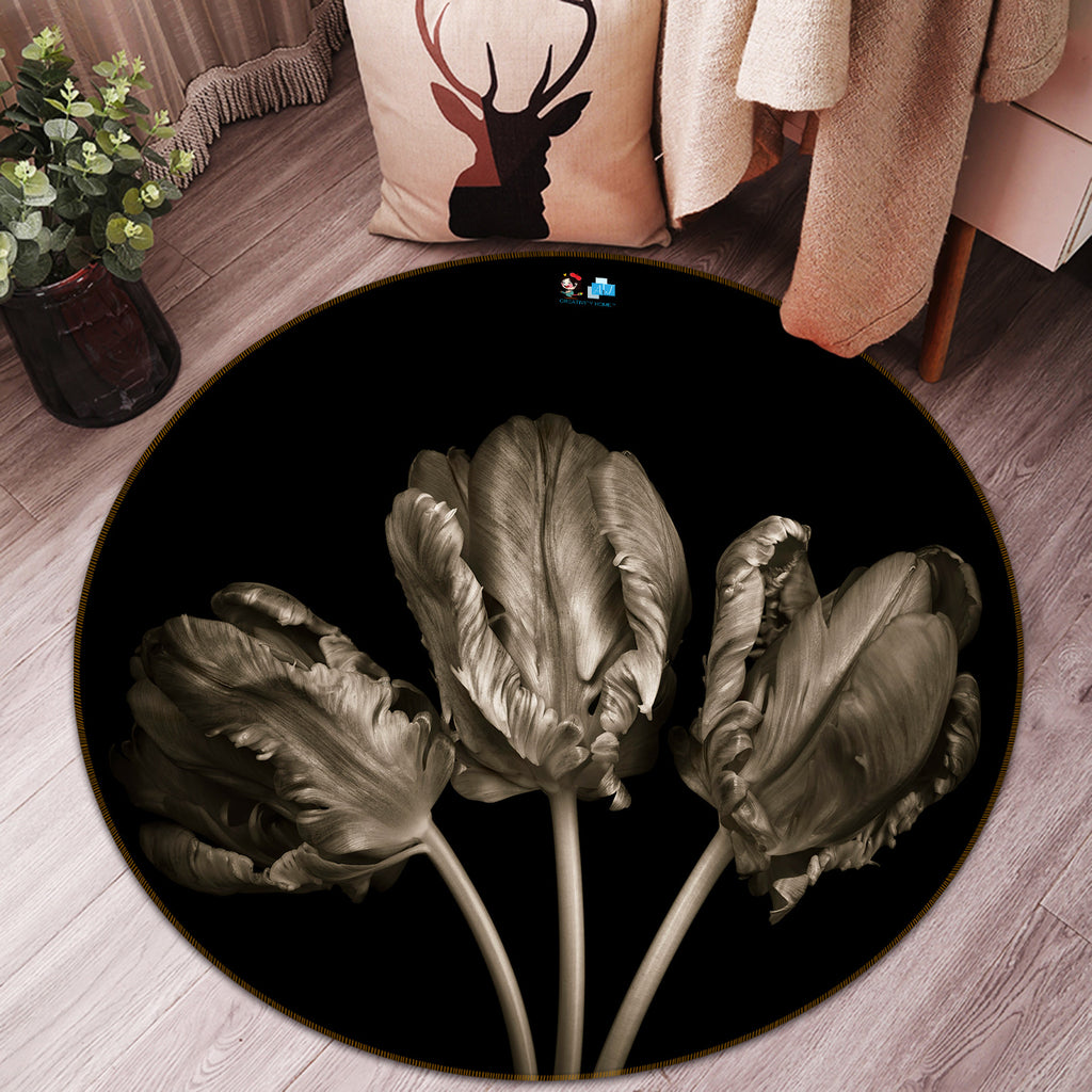3D Gray Flower 7506 Assaf Frank Rug Round Non Slip Rug Mat Amy