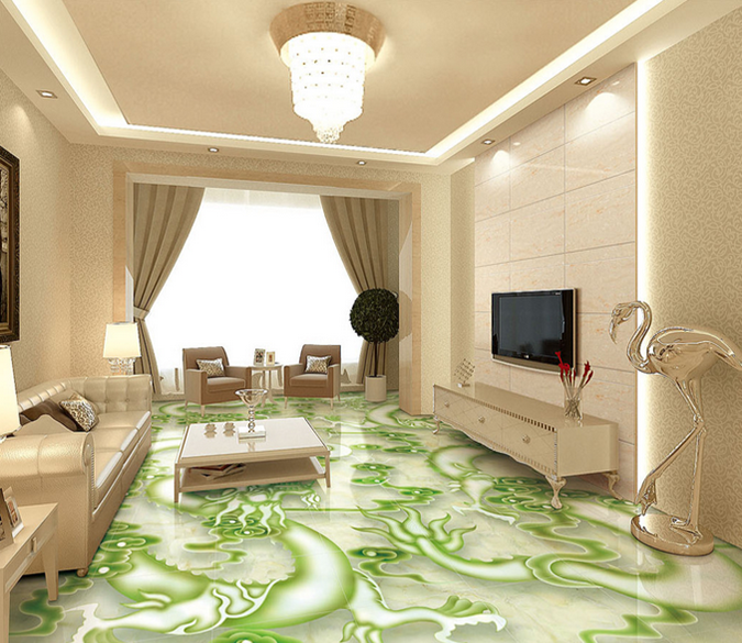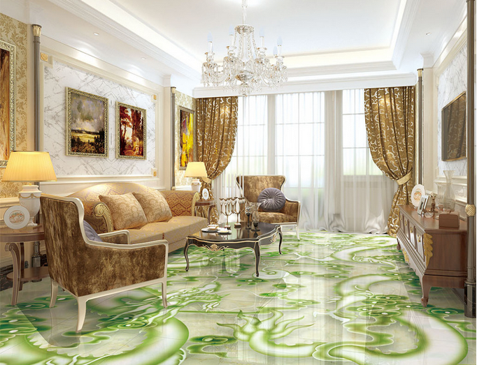 3D Green Dragon 128 Floor Mural